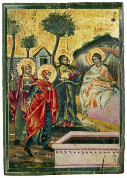 Υπάρχει θησαυρισμένος στον μητροπολιτικό ναό του Αγ. Αχιλλίου και παριστά άγγελον Κυρίου να υποδεικνύει στις Μυροφόρες το «κενόν μνημείον» (τάφον) του Ιησού, λέγων: «Ουκ έστιν ώδε. Ίδετε ο τάφος όπου έθηκαν αυτόν».