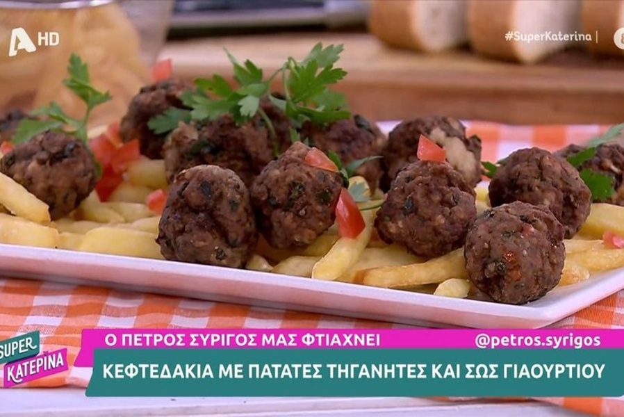 Κεφτεδάκια με πατάτες τηγανητές και σως γιαουρτιού από τον Πέτρο Συρίγο