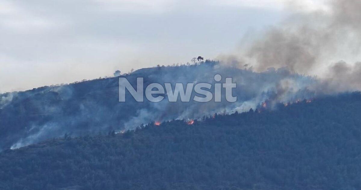 Σύμφωνα με την πυροσβεστική, η φωτιά εξακολουθεί να καίει ανάμεσα σε Ποροβίτσα και Άμπελο.