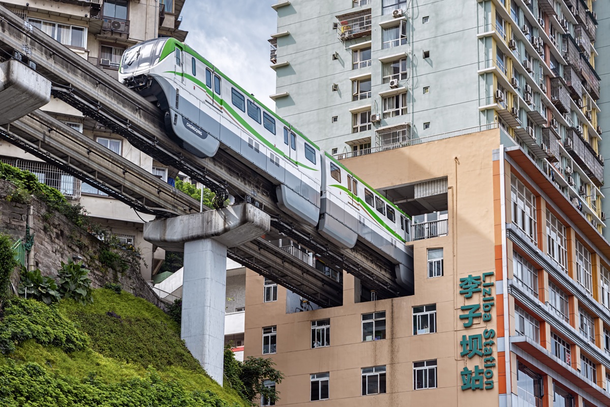 Το έντονο ανάγλυφο έχει επίσης οδηγήσει σε πρωτότυπες λύσεις μετακίνησης: τεράστια συστήματα γέφυρων, ανελκυστήρες που συνδέουν γειτονιές σε διαφορετικά επίπεδα και ένα από τα πλέον εκτεταμένα δίκτυα μετρό στην Κίνα.