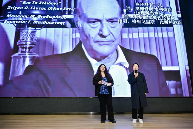 «Οι γλώσσες ως φορείς του παγκόσμιου πολιτισμού: Η Ελληνική Γλώσσα ως γέφυρα διαλόγου μεταξύ των πολιτισμών» ήταν ο τίτλος εκδήλωσης που πραγματοποιήθηκε χθες, Σάββατο 18 Απριλίου, στην κατάμεστη αίθουσα του Κέντρου Αρχαίου Ελληνικού και Κινεζικού Πολιτισμού (ΚΕΛΚΙΠ Κίνας), στο Πανεπιστήμιο Southwest στην πόλη Chongqing της νοτιοδυτικής Κίνας. Στην εκδήλωση, που ήταν αφιερωμένη στην 1η επέτειο της Παγκόσμιας Ημέρας Ελληνικής Γλώσσας, συμμετείχαν Έλληνες ακαδημαϊκοί και συγγραφείς, Κινέζοι ελληνιστές, εκπρόσωποι όλων σχεδόν των Τμημάτων Ελληνικών Σπουδών Πανεπιστημίων της Κίνας, σπουδαστές ελληνικής γλώσσας και πολιτισμού και πλήθος κόσμου. Στην εναρκτήρια ομιλία του, ο πρέσβης της Ελλάδας στην Κίνα, Δρ. Ευγένιος Καλπύρης, ανέτρεξε στην ιστορία σαράντα αιώνων της ελληνικής γλώσσας, αναδεικνύοντας «τη σημασία της ελληνικής γλώσσας ως παγκόσμιου δημόσιου αγαθού και τον αναμφισβήτητο δυναμισμό του ελληνικού γλωσσικού φαινομένου». «Όταν, πριν από 3000 έτη, αναπτύχθηκε το ελληνικό Αλφάβητο, διατηρήθηκε μία βαθιά εσωτερική σχέση λέξης και εικόνας με την προηγηθείσα ελληνική ιδεογραφική γραφή. Δεν δύναμαι να εξεύρω άλλη διεθνή γλώσσα που επικράτησε για σχεδόν 2000 έτη […] , Περισσότερα…
